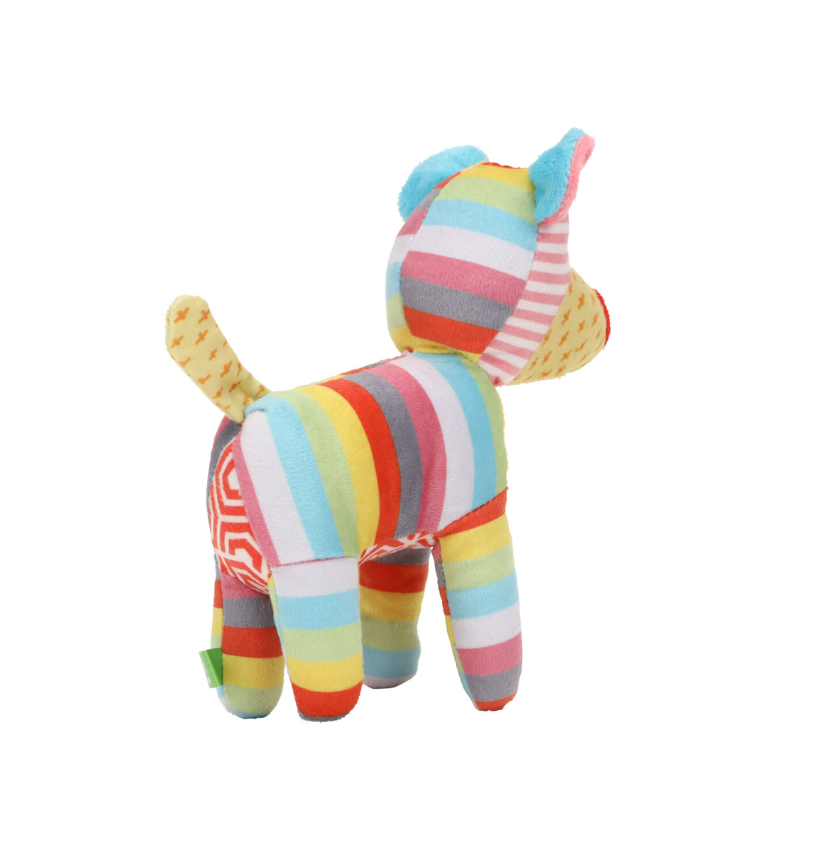 ふわふわとした鮮やかな色合いの生地が触り心地(噛み心地!?)抜群&見た目も楽しいです。比較的小ぶりなので、小さなワンちゃんも楽しく遊べます。