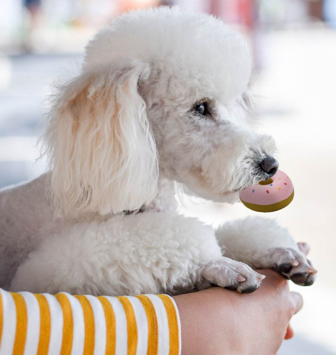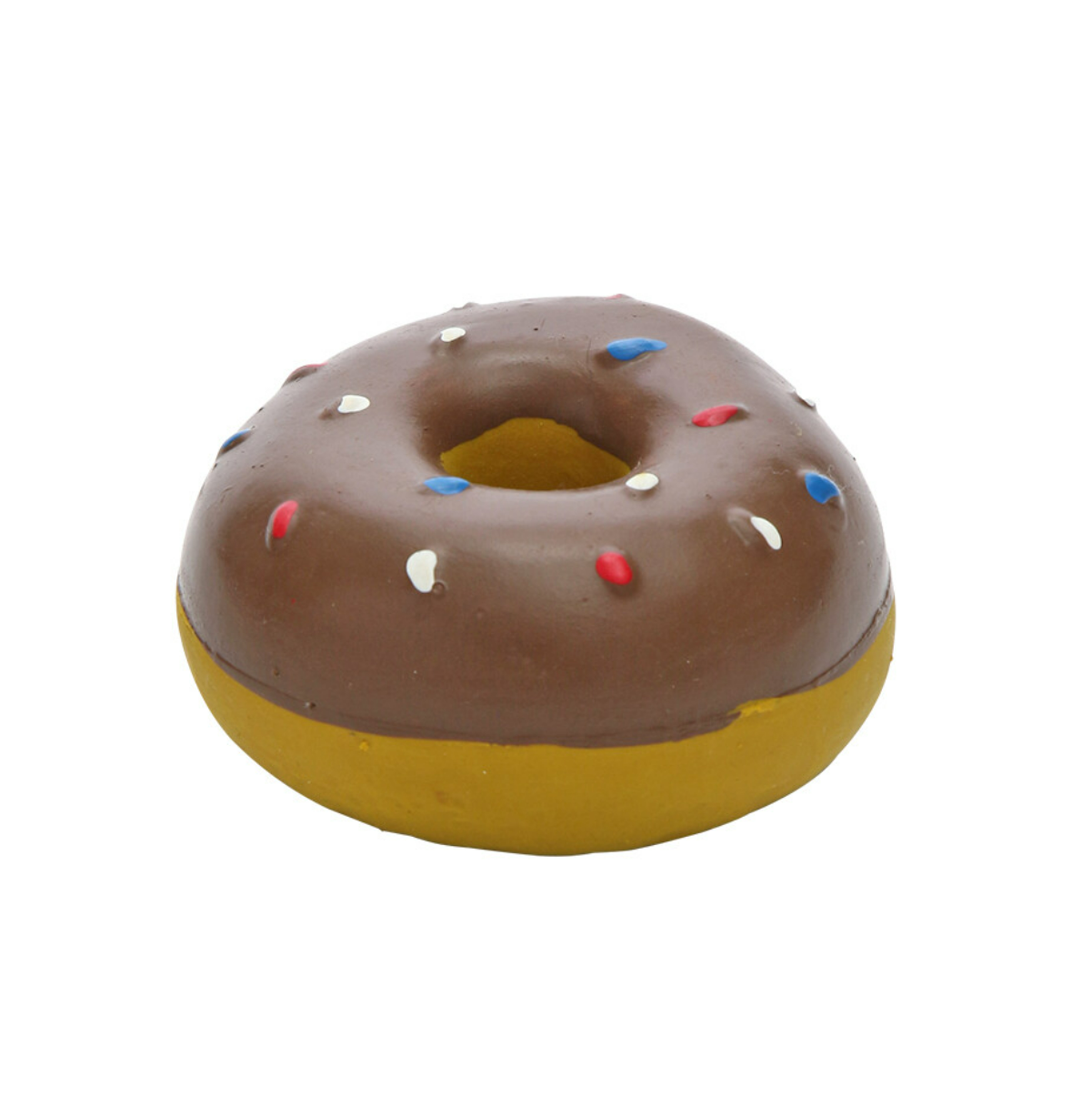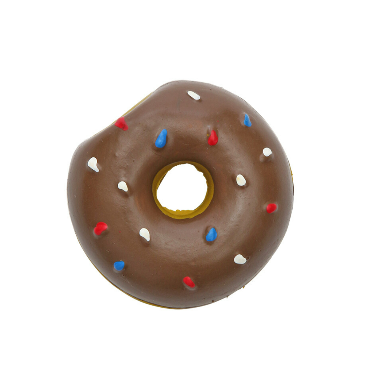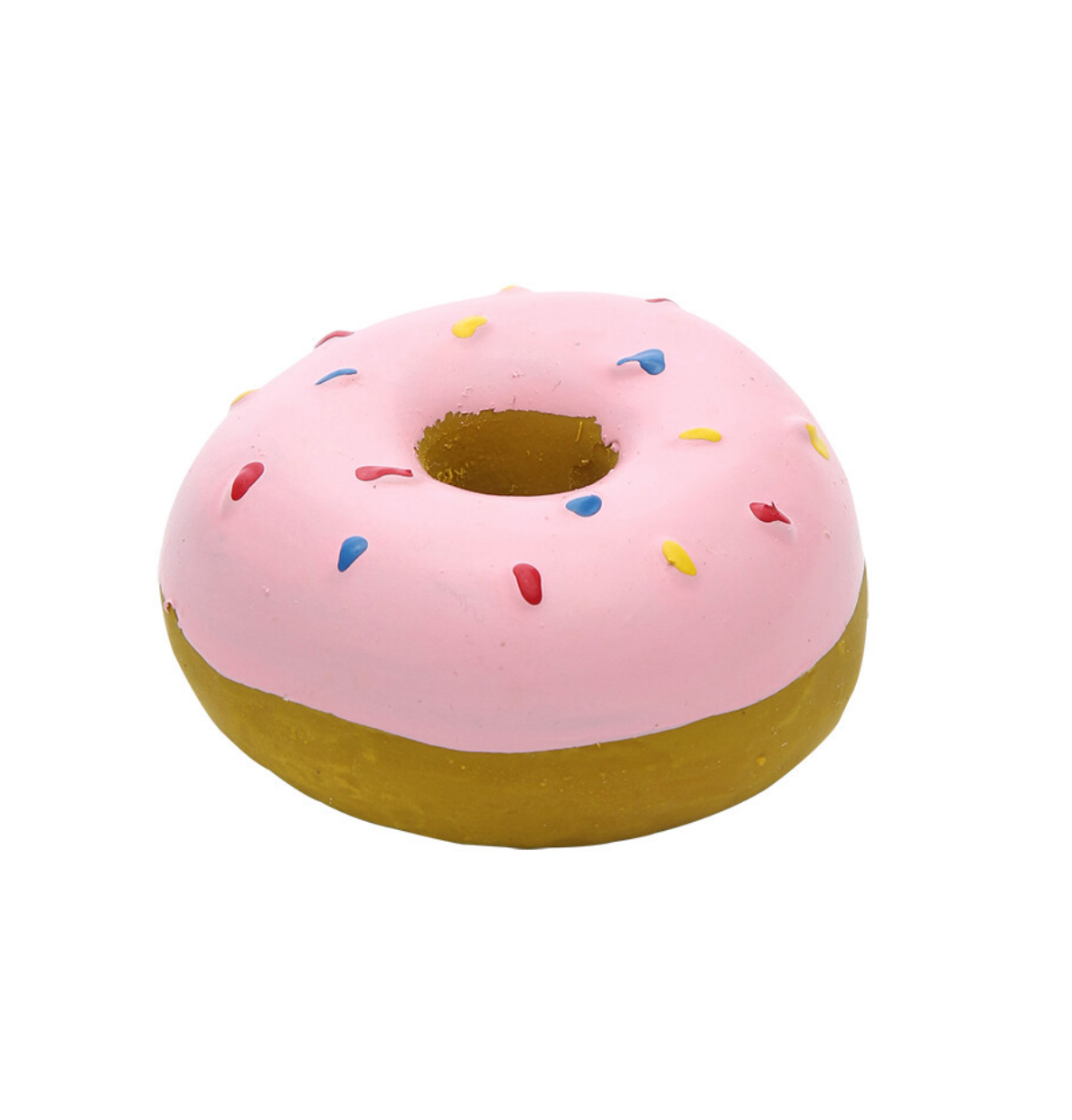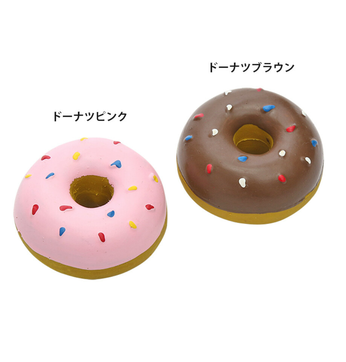 「プーピーズ ドーナツ」は、ドーナツ型のゴムおもちゃです。ソフトタイプのラテックス製なので柔らかく、噛みつきやすいです。空気の出入でプーピー音が鳴ります。