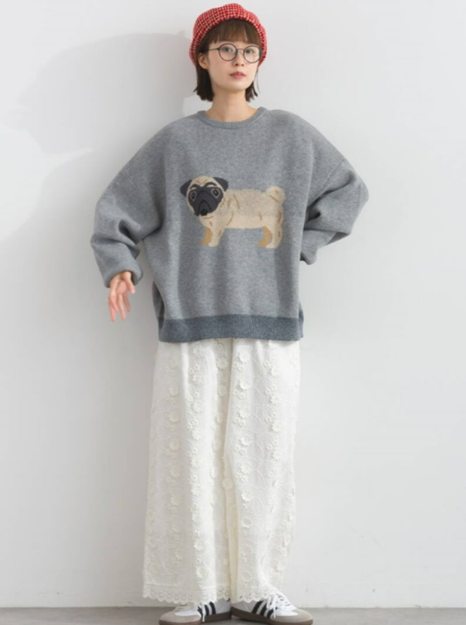 Lupilien アニマル柄 長袖ジャガードニットプルオーバー NEW Lupilien アニマル柄 長袖ジャガードニットプルオーバー (AJNP) パグモチーフのジャガードニットプルオーバー。 インパクトのあるデザインですが、落ち着いた色合いが大人可愛いアイテムです。 サイズ:フリー(総丈58、身幅50、肩幅50、裾幅50cm) 素 材:ポリエステル100% MADE IN CHINA 【Lupilien】 Lupinus(ルピナス)+riant(リア)+Lien(リアン)。ルピナスの花言葉である「安らぎを与える」とリア(うれしい・楽しい・笑う)とリアン(絆)を合わせた造語。肩の力が自然に抜けるようなナチュラルカジュアルウェアを提案しております。 Lupilien アニマル柄 長袖ジャガードニットプルオーバー 在庫状態 : 在庫有り ¥4,950(税込) 数量