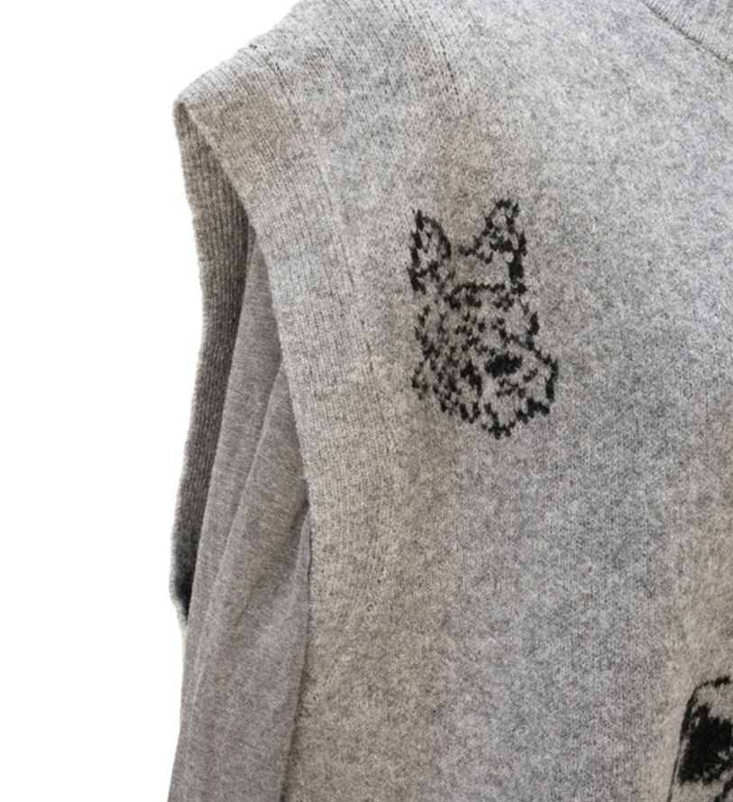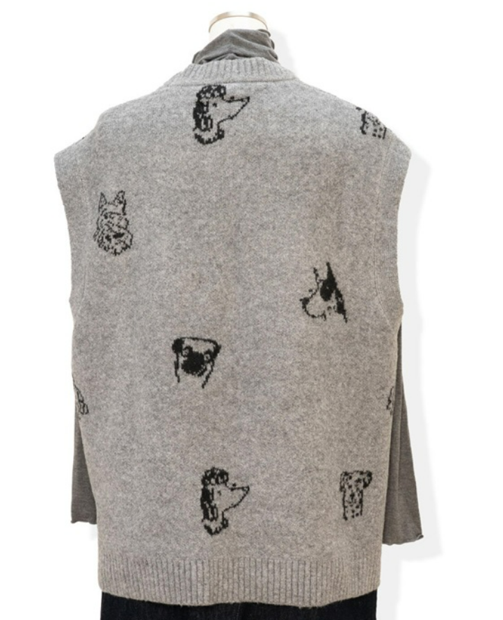 Lupilien 手書き風 ワンちゃん 前開きニットベスト