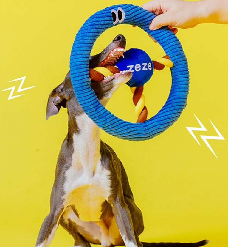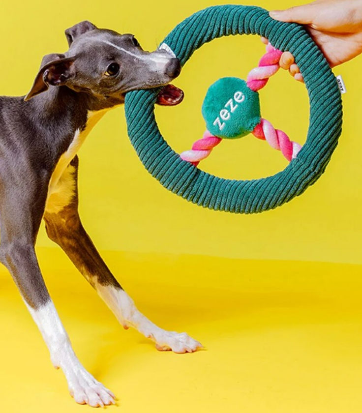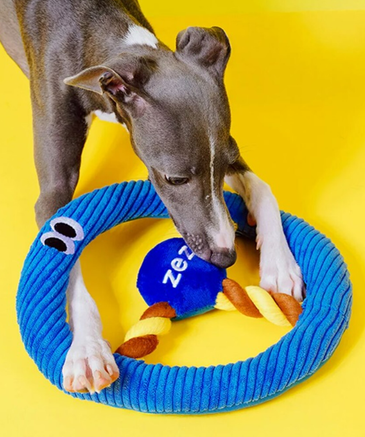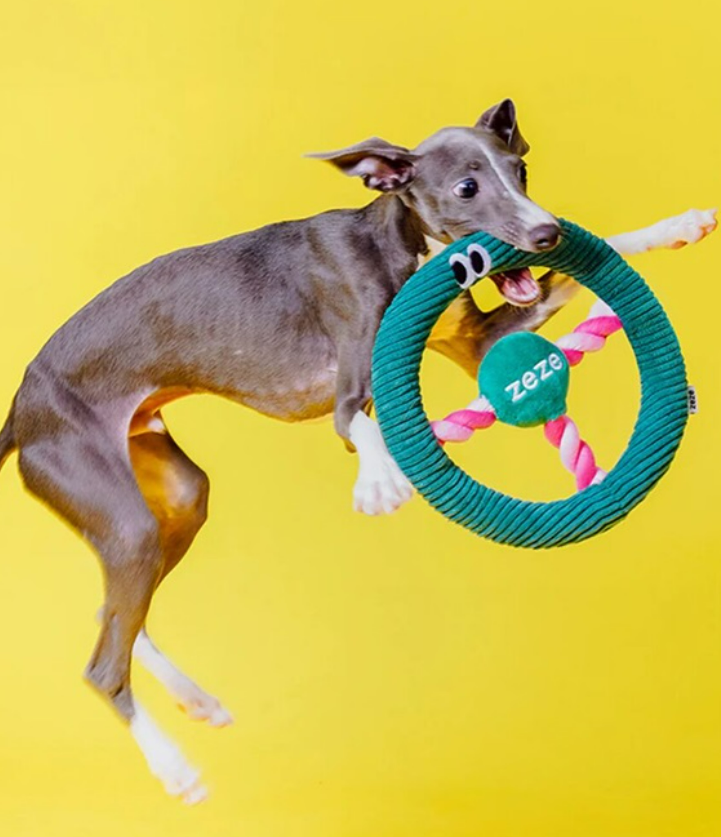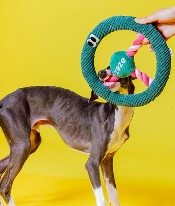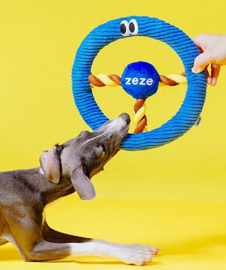 ZEZE DOG HANDLE ZEZE DOG HANDLE (DOG-H) キュートなカラーリングのドッグハンドル! フリスビーとして遊んでもよし、ワンちゃんと引っ張り合いっこしてもよし! 愛犬との癒しの時間にいかがでしょうか。 フレームには凹凸感のある生地が使用されていたり、ハンドルの内側はネジネジされていたりと、触れるだけでも質感のある素材で愛犬のわくわく心をくすぐります。 目が付いたキャッチーなデザインは、インテリア雑貨のような佇まいなので、床に転がっていても気になりません。 サイズ:W200×H60×D70mm 素 材:ぬいぐるみ生地、EUA、ロープ ZEZE DOG HANDLE グリーン 在庫状態 : 在庫有り ¥1,430(税込) 数量 1ZEZE DOG HANDLE ブルー 在庫状態 : 在庫有り ¥1,430(税込) 数量
